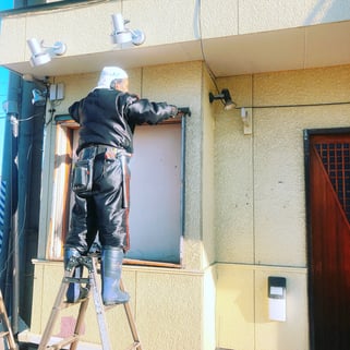 今日から改装工事。まずは表の看板から。書かれてた「ふく田」という文字が新年には「福」に変わります。