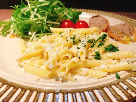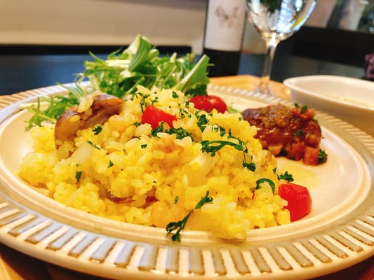 ということで、明日のホリデーランチはパエリアとパイカ白ワイン煮とサラダのワンプレート、ブルーチーズソースのペンネとレバーペーストとサラダ、大サラダとバゲットの3つです。どのセットもスープとドリンク付きです。
