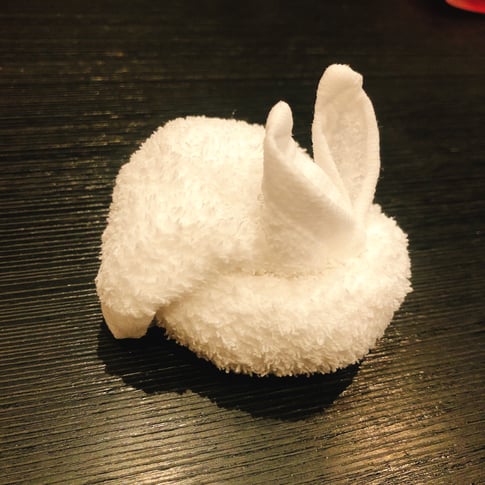 お一人で来られたお客様がおしぼりでうさぎちゃんを作って帰りました。