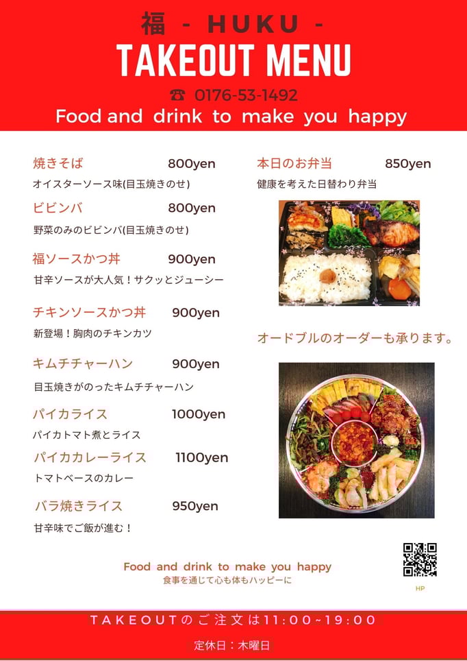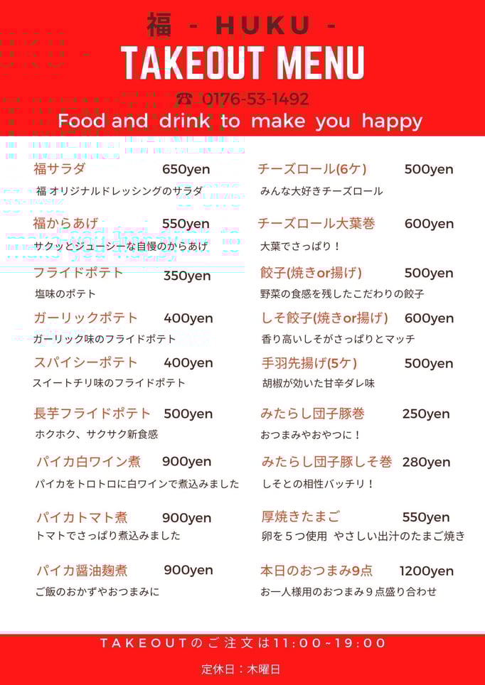 テイクアウトメニューを新しくしました!