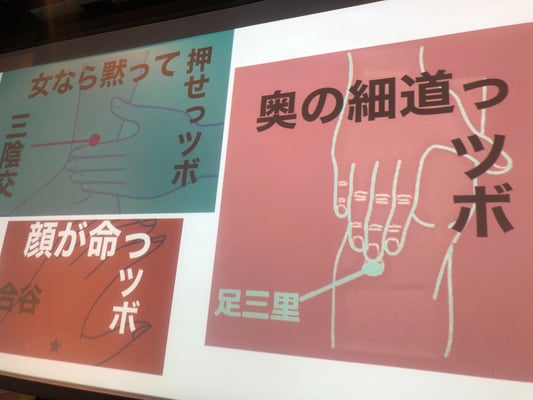 今日はミチコ先生に、大事なツボを4つほど教えてもらいました。