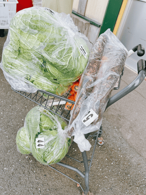 2022.07~12 · 26日 11月 2022 三沢の野菜 うちの店の裏には野菜市場があります。 うちの野菜はほとんどここから。 今日は年に一回の野菜市場感謝セール! これは行かなくちゃ!といっぱい買って来ましたよー。何料理にするかは後で考えるw 白菜もキャベツこんな山盛りで450円。 お買い物したら紅白餅が付いてきたよー。 嬉しい。 さぁ、明日からも「美味しい」を目指して頑張るぞー。 tagPlaceholderカテゴリ: 福 コメントをお書きください コメント: 0