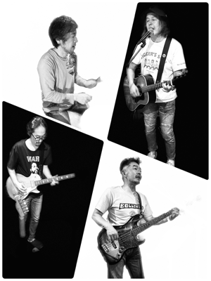 バンドはアコギ:坂本サトルさん、エレキ:山口克彦さん、ベース:坂本昌人さん、ドラム:鈴木慎也さん