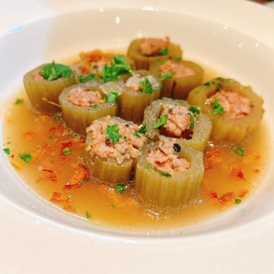 「フキの肉詰めスープ仕立て」はコンソメスープで、意外性があり人気のようです。