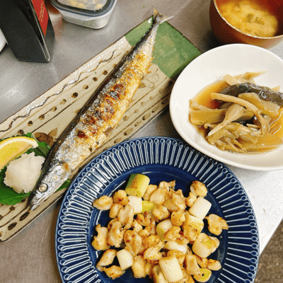 今日は賄いで秋刀魚を食べましたよー。