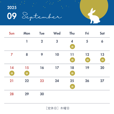 営業日はカレンダーを見てください。