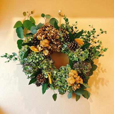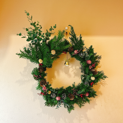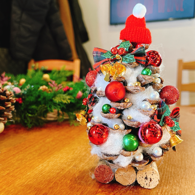 さて、今日から3日間、福ではクリスマスリースと松ぼっくりツリーのワークショップ。
