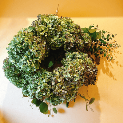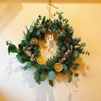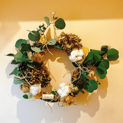 リースと松ぼっくりツリー半々くらい。