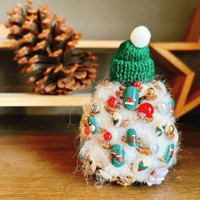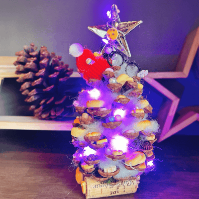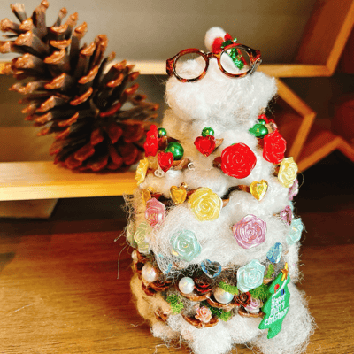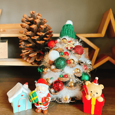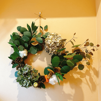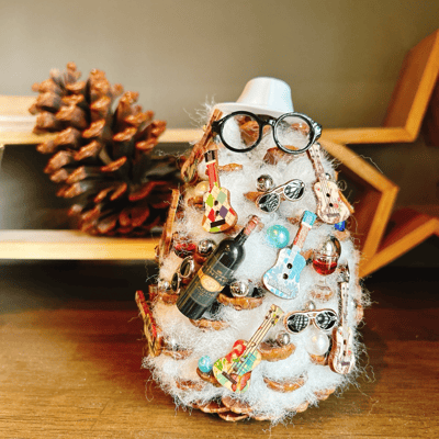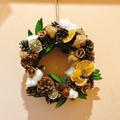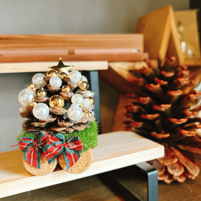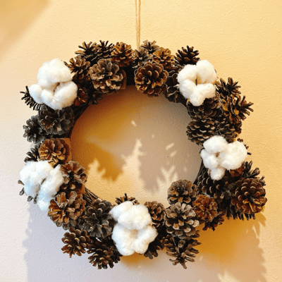 今回はリースにしたんですが、松ぼっくりツリーも