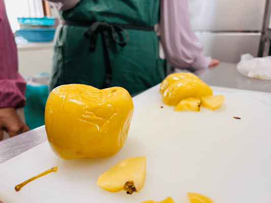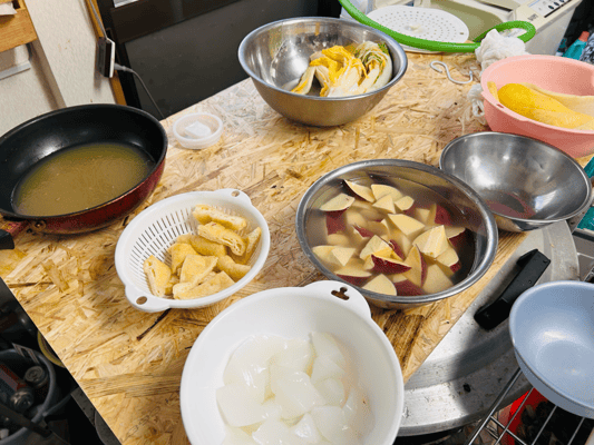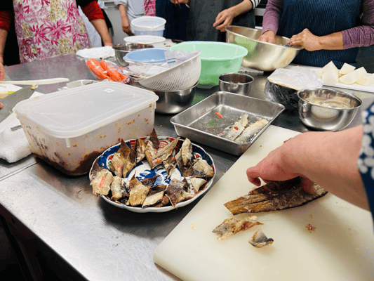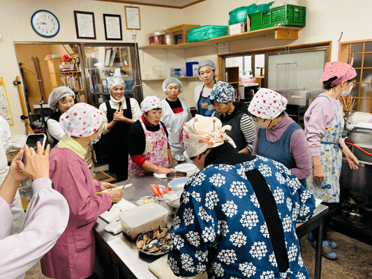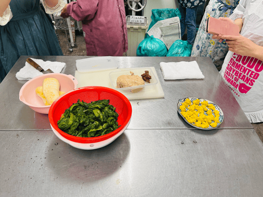 あかつきの会のみなさんが、調理してるところを見学させてもらったり、ちょっとお手伝いしたり、質問も沢山させてもらいました。