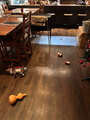 そしたら飾り物が少し落ちてただけで、ワイングラスもワインも無事でした。
