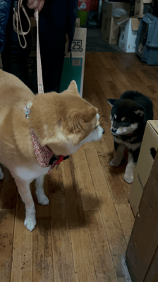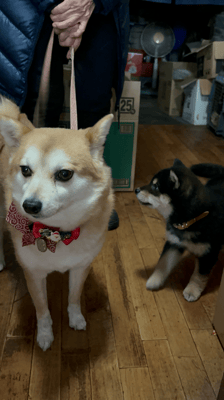先日、たらちゃんを酒屋さんで飼っている子犬とご対面させました。