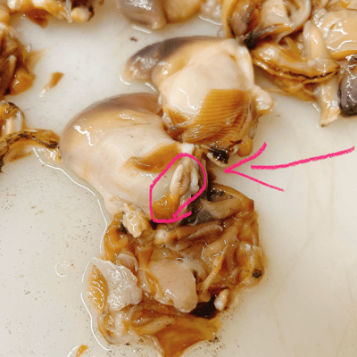 このムシはだいたいほっき貝一つに一匹付いています。付いてない時もありますが。