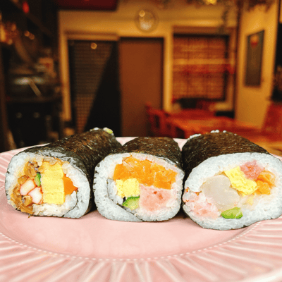 アルバイトのひろえさんが恵方巻きを買ってきてくれて、2人で食べました。