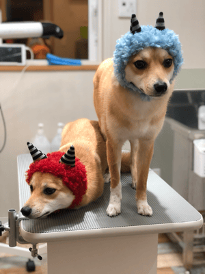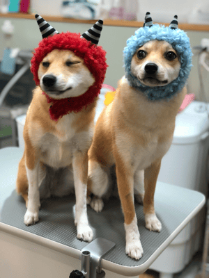うちのたらぽさんとたらぽさんと姉妹のライリーの鬼姿の写真見つけましたw