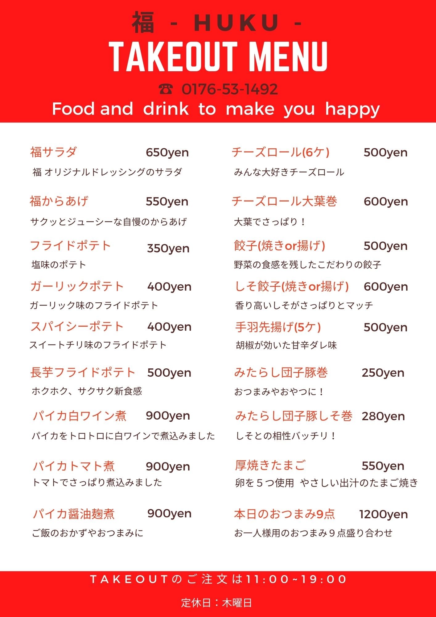 テイクアウトメニューを新しくしました! ご利用の方はこちらをご覧ください。