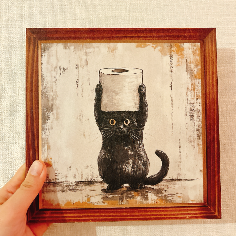 いつもお店の飾りなんかで利用している外国の通販サイト。 時々失敗します。 額に入った猫の絵があまりにもかわいくて買ったのです。 届いて、見てみたら額までもが絵でしたw ということで、立体感を出すために工作。 コルクで額を作りましたw いいかも。