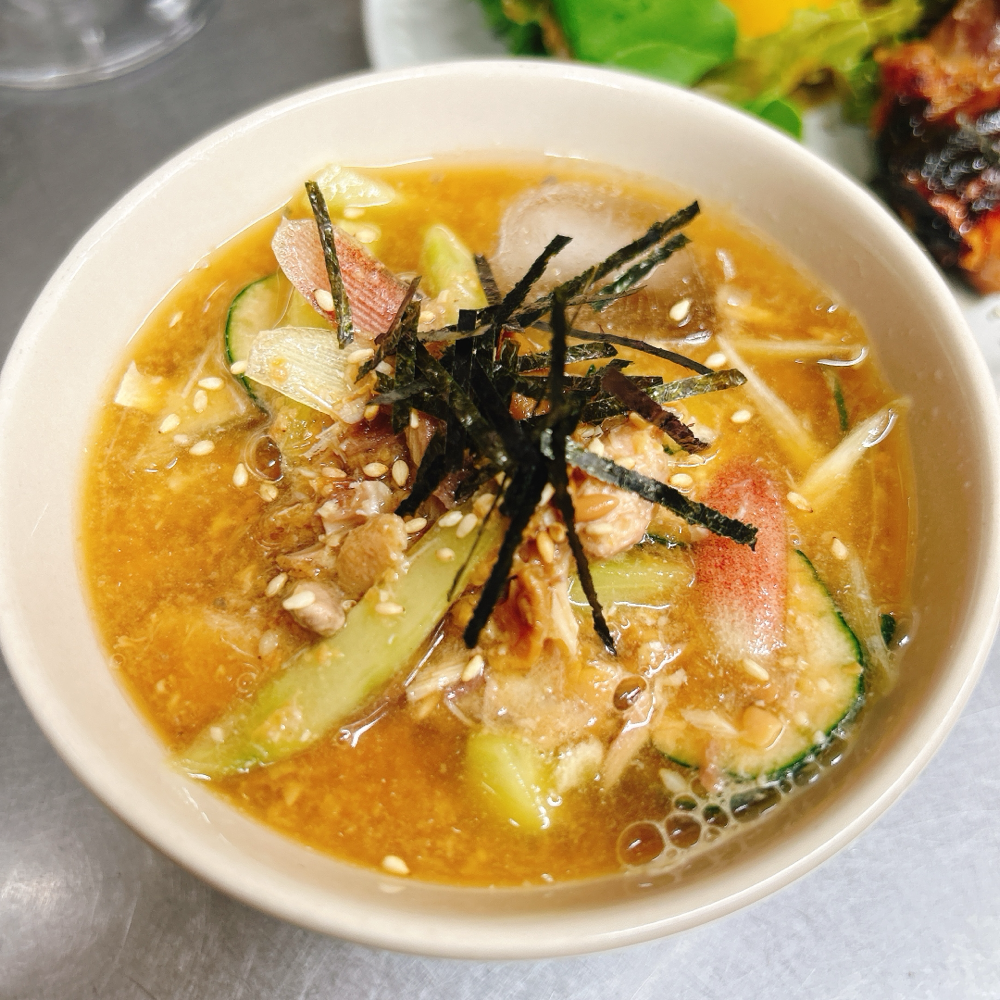 昨日、賄いで初めて作った冷や汁。 ちとハマりまして、今日は冷や汁茶漬けに。 こりゃうめぇ。 これをちょっとアレンジしてお店で〆のメニューとして出すのもいいなぁ。 研究しよっと!